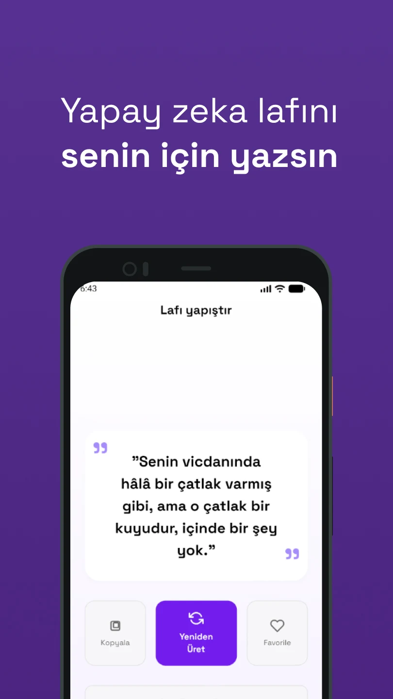 Laf sokmak bazen sanattır, bazen ihtiyaç. Lafmatik ise bu işi senin yerine düşünen akıllı yardımcın.